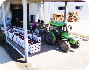 Сбор черешни и вишни происходит сразу в транспортировочные коробки. Фирменные лотки из пятислойного, гофрированного картона и бережный процесс сбора ягоды — залог качественной продукции на витринах наших покупателей.